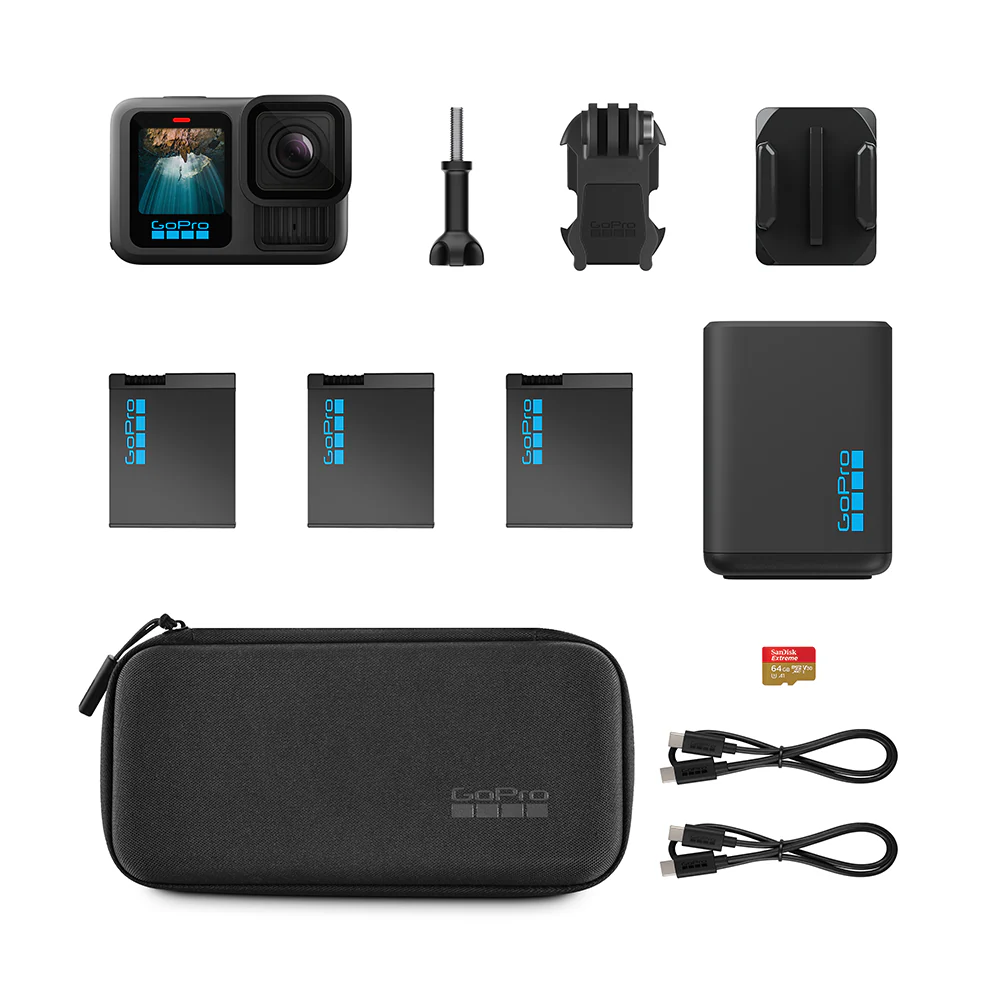 La GoPro HERO 13 Black + Extended Power Bundle es la solución completa para quienes demandan rendimiento, calidad y autonomía en un solo equipo. Perfecta para deportes, viajes o cualquier aventura que desees inmortalizar con la mejor tecnología.